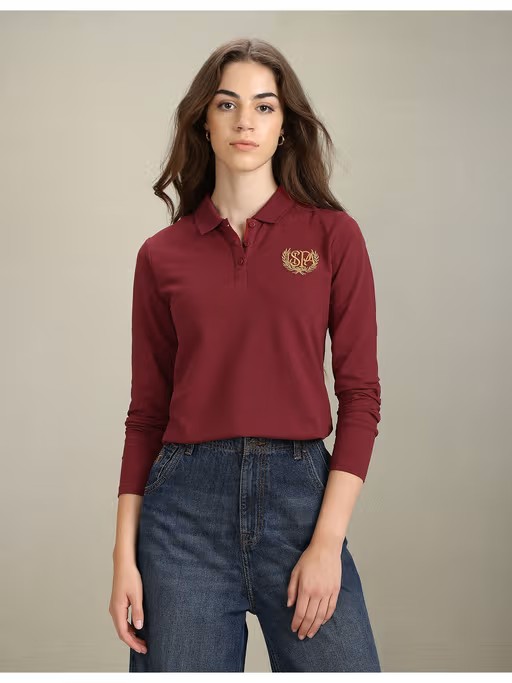 Cut in a slim silhouette, this cotton blend polo T-shirt features long sleeves and an eye-catching gold crest on the chest.