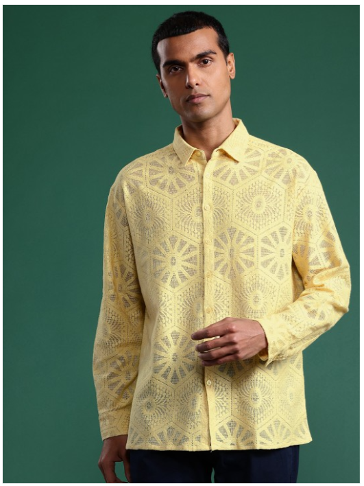Featuring unique colour with semi-sheer pattern, this shirt will fit you right. Pair it with flats and subtle jewellery for an elegant summer look.