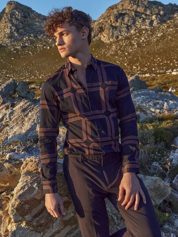 Men Slim Fit Checkered Spread Collar Casual Shirt