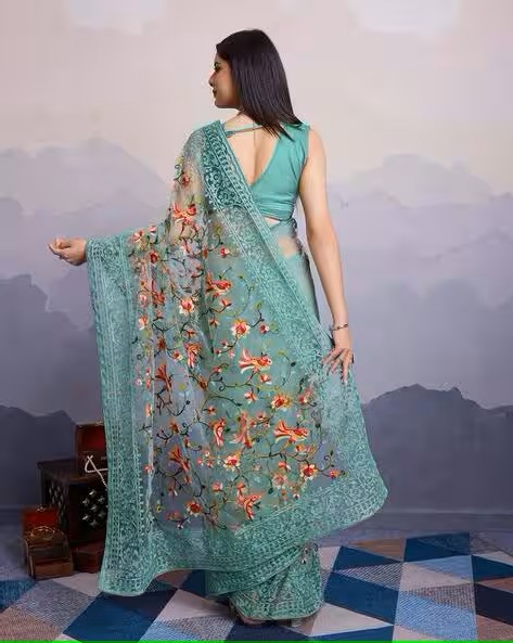 Women Floral Embroidered Saree
