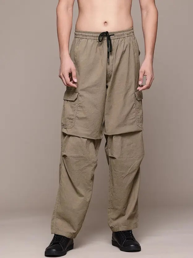 Men Loose Fit Brown Cotton Blend Trousers
