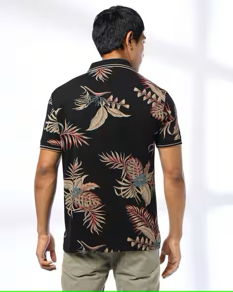 Men Tropical Print Slim Fit Cotton Polo T-Shirt