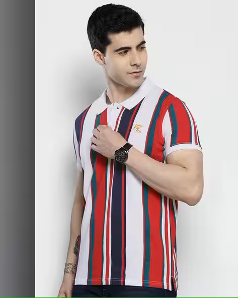 Men Striped Slim Fit Polo T-Shirt