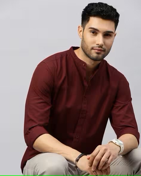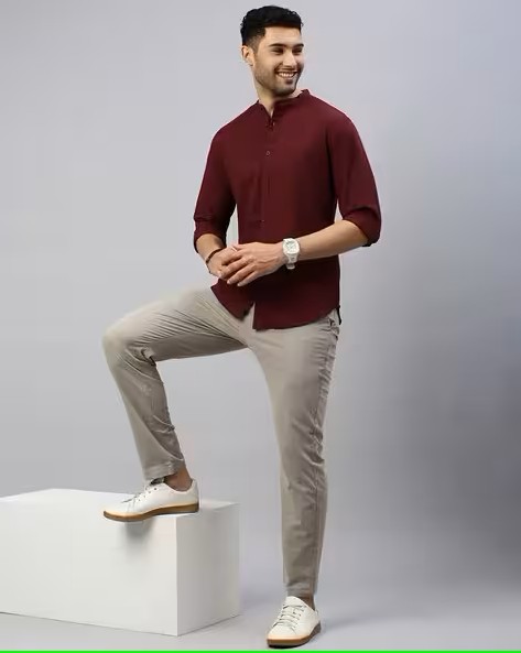 Mandarin Collar Slim Fit Solid Shirt