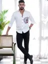 Men Super Slim Fit Self Design Slim Collar Formal Shirt