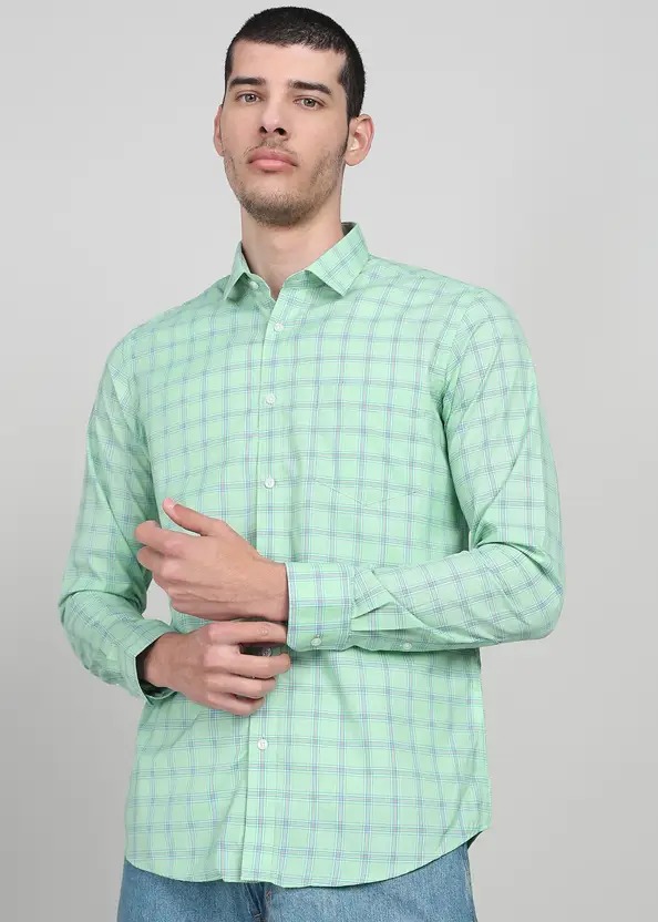 Killer Elite Mens Green Checkered Slim Formal Shirt