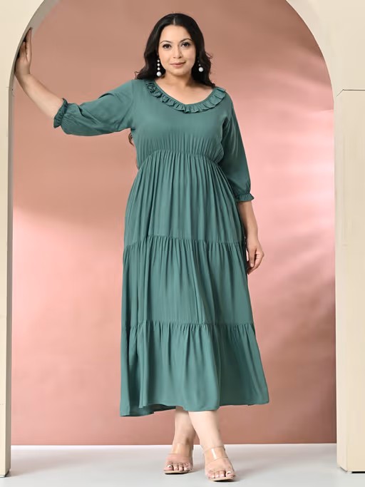 Plus Size Sea Green Rayon Ruffle Tiered Dress