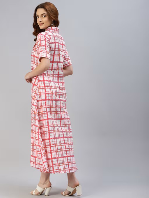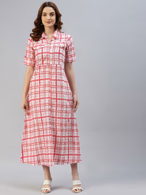 An amazing range of women's ethnic wear in soft and solid colors that looks perfect for regular wear. With beautiful designs and patterns. These apparels are very stylish and comfortable too. Get rid of the 'regular' look this season wearing Kurta Dress by SVARCHI. With a perfect blend of comfort and traditional style, This Red & White A-Line Geometric Printed Kurta Dress from SVARCHI exhibits designer buttons in front along with Shirt Collar & Short Sleeves. Tailored from Cotton Cambric. Product Length: 48 Inches.