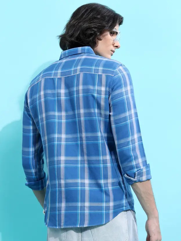 Men Slim Fit Checkered Spread Collar Casual Shirt