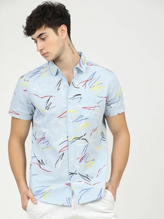 Men Slim Fit Printed Cut Away Collar Casual Shirt
