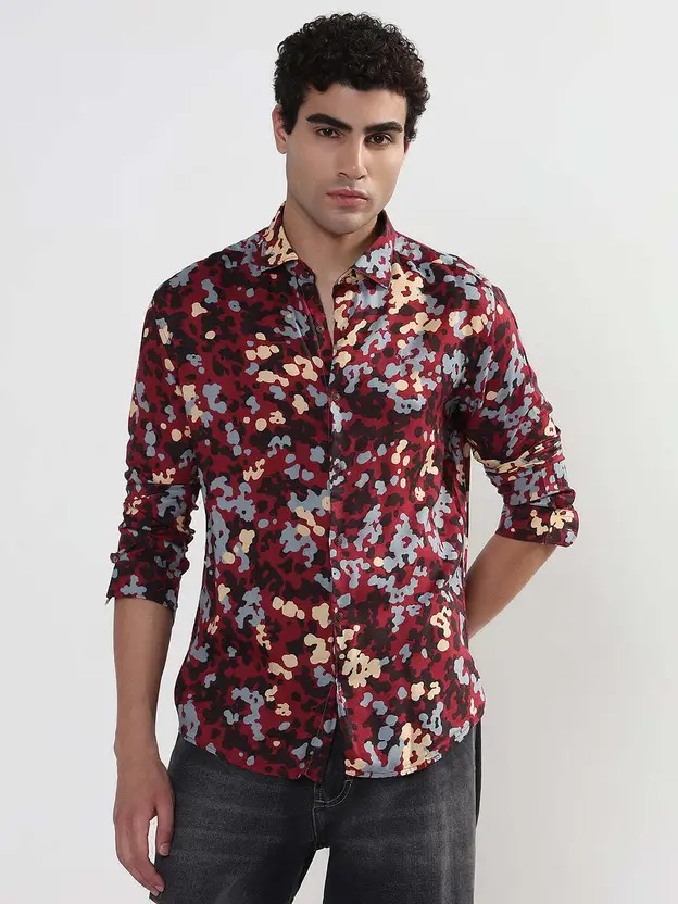 Men Slim Fit Printed Spread Collar Casual Shirt