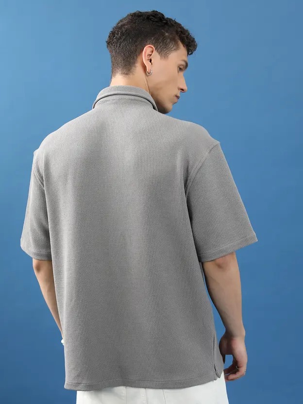 Men Regular Fit Solid Cut Away Collar Casual Shirt