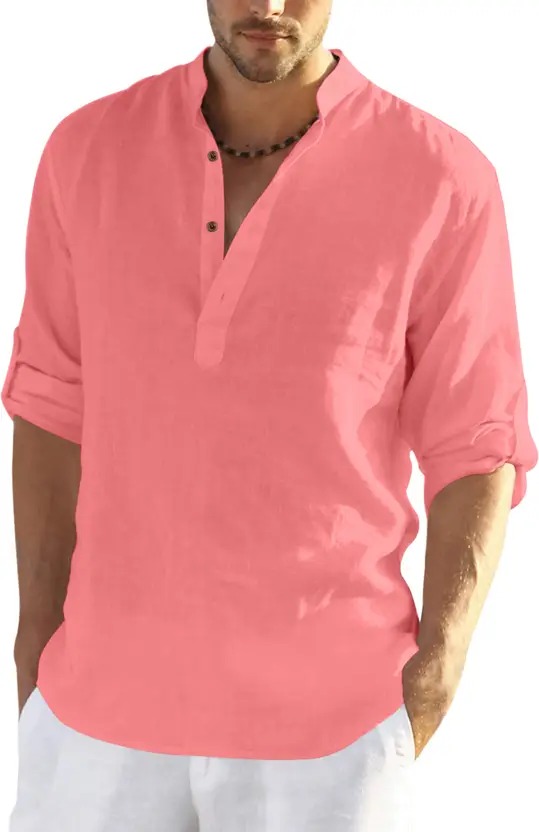 Men Regular Fit Solid Mandarin Collar Casual Shirt