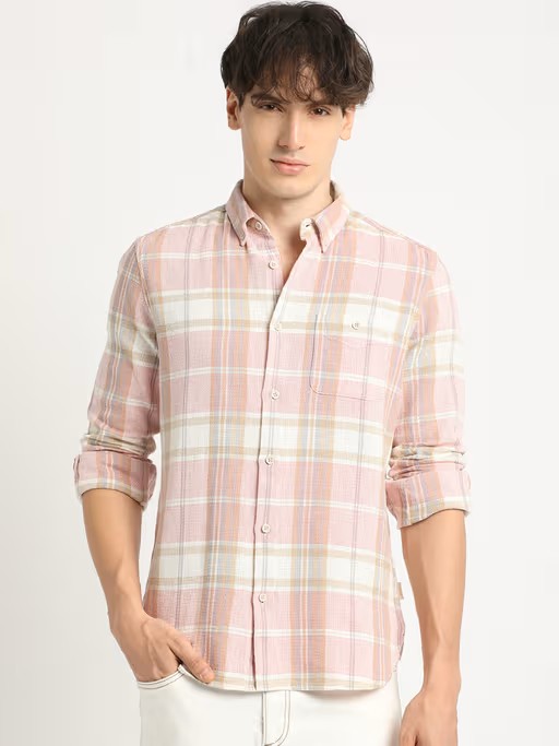 Adorn The Style Stitched For You With This Pink Shirt From The Bear House. Made From High Quality Cotton, It Features Button Fly Closure And Checks Pattern Along With Full Sleeves & Collar Neck Design. Pair It With Jeans And A Pair Of Sneakers To Complete Your Ensemble.