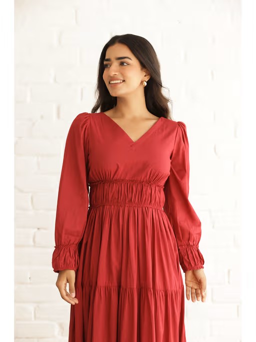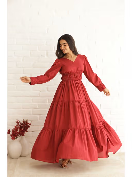 The Tiered Design Gives It A Beautiful Flow, Adding A Touch Of Elegance. The Vibrant Red Color Makes It Stand Out, Perfect for Any Event or Outing. Whether It's A Casual Day or A Special Occasion, This Dress Will Make You Look and Feel Amazing.