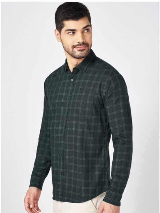 Green other checks solid opaque Casual shirt ,has a spread collar, button placket, 1 pocket, long regular sleeves, curved hem