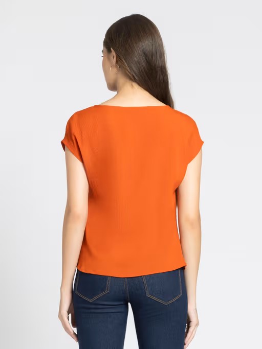 Boat Neck Drop Shoulder Poly Crinkled Fabric Top Has Embroidery On Shoulder