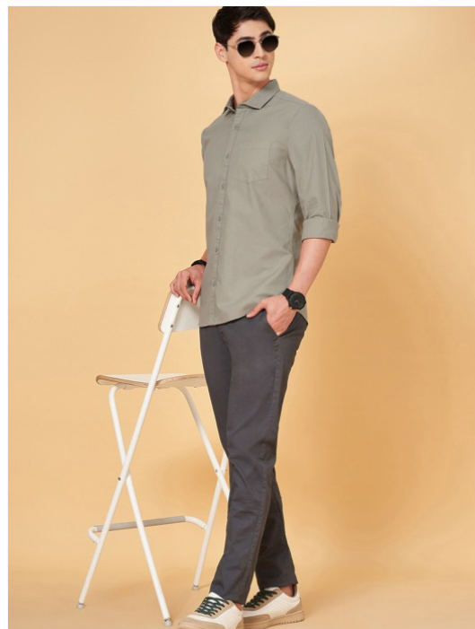 Green solid opaque Casual shirt ,has a spread collar, button placket, 1 pocket, long regular sleeves, curved hem
