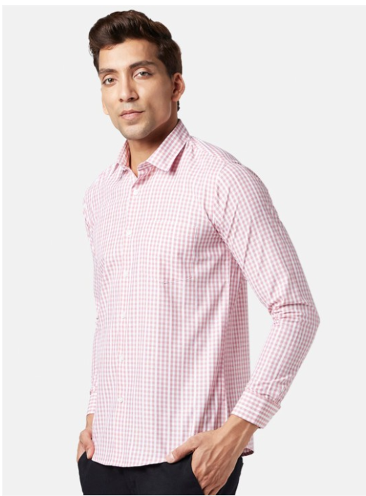 Red other checks checked opaque Formal shirt ,has a spread collar, button placket, 1 patch pocket, long regular sleeves, curved hem