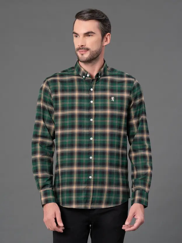 Men Regular Fit Checkered Button Down Collar Casual Shirt