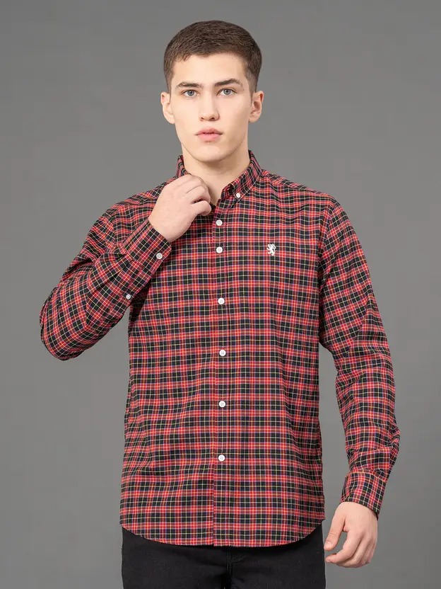 Men Regular Fit Checkered Button Down Collar Casual Shirt