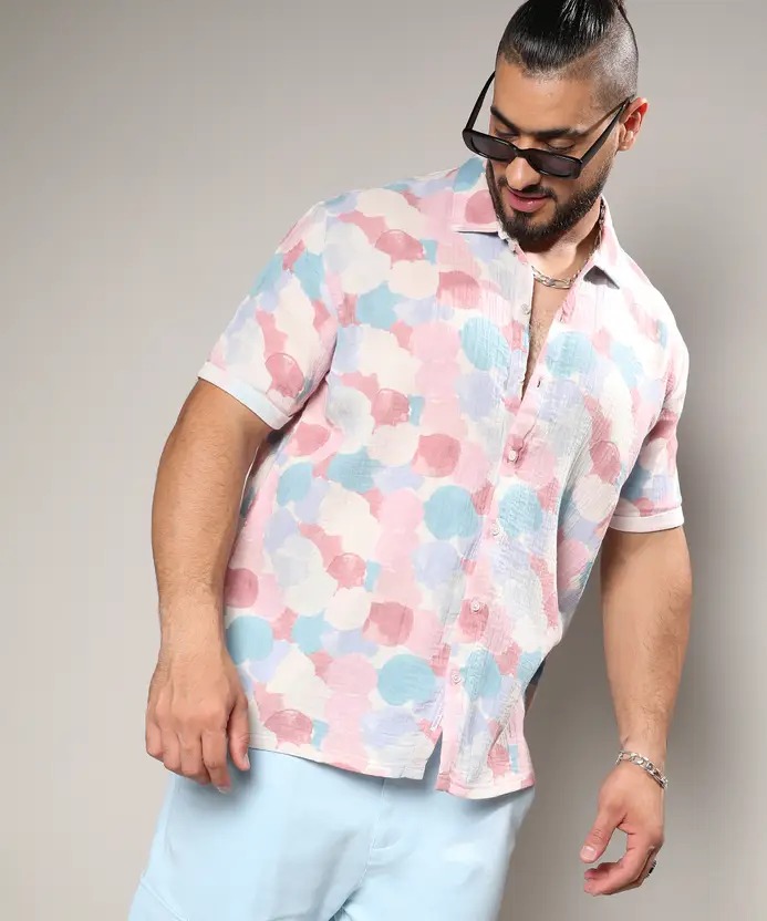Men Regular Fit Printed Spread Collar Casual Shirt