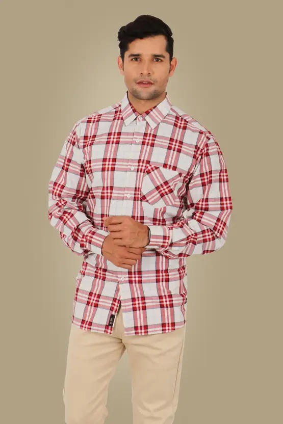 Men Regular Fit Checkered Spread Collar Casual Shirt
