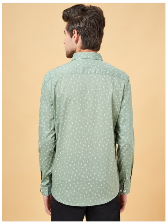 Green floral printed opaque Casual shirt ,has a spread collar, button placket, 1 pocket, long regular sleeves, curved hem