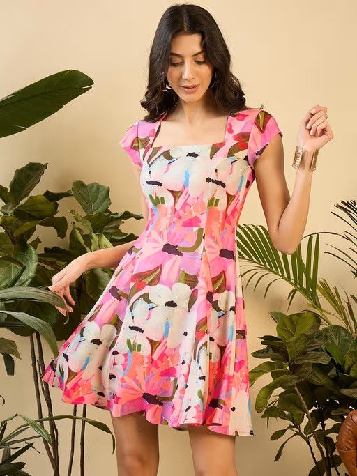 Garner all the attention in this multi-color dress from Mabish By Sonal Jain. Crafted from polyester, this stylish dress features cap sleeves and a square neck. Team it with a pair of heels and minimal jewellery.