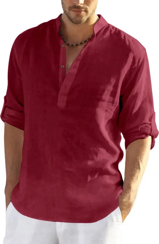 Men Regular Fit Solid Mandarin Collar Casual Shirt