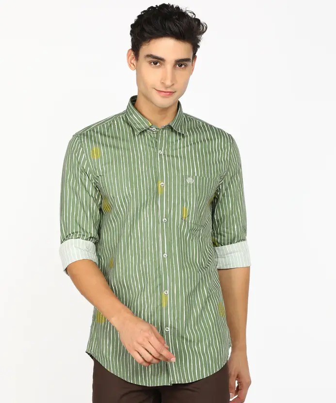 Men Super Slim Fit Striped Spread Collar Casual Shirt