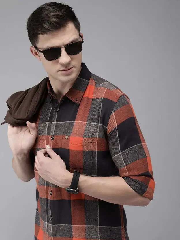 Men Slim Fit Checkered Spread Collar Casual Shirt