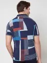 Men Geometric Print Cotton Navy Blue T-Shirt