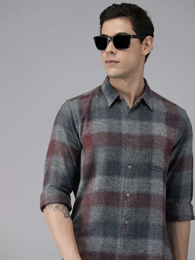 Men Slim Fit Checkered Spread Collar Casual Shirt
