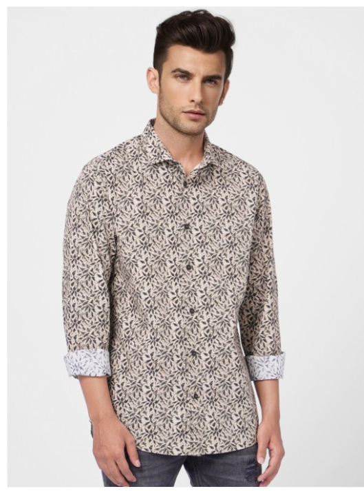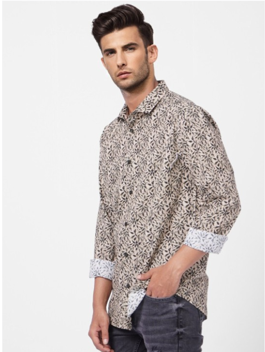 Green Floral printed opaque Casual shirt ,has a cutaway collar, button placket,long regular sleeves, curved hem