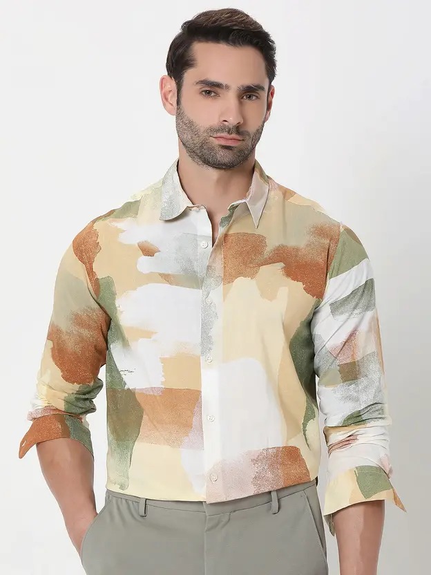 Men Slim Fit Printed Spread Collar Casual Shirt
