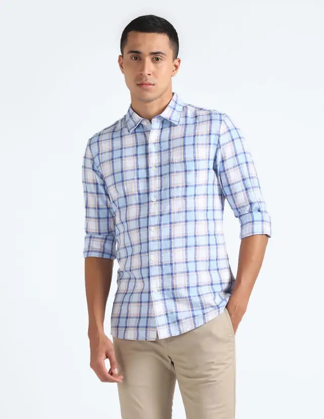 Men Slim Fit Checkered Spread Collar Casual Shirt