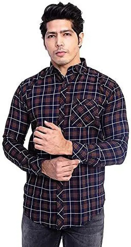 Men Regular Fit Checkered Button Down Collar Casual Shirt