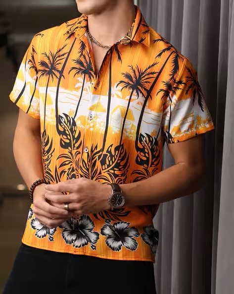 Shein Spread Collar Short Sleeves Tropical Shirt