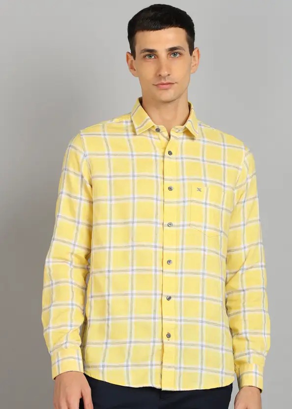 Killer Mens Yellow Checkered Full Sleeve Casual Shirt