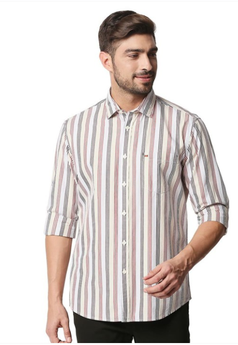 Vertical Stripes Cotton Spread Collar Slim Fit Striped Casual Shirt