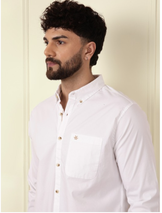Expand your collection of casual staples with this cool shirt. This white piece can be teamed with distressed denims and canvas shoes when you're grabbing lunch with the guys.