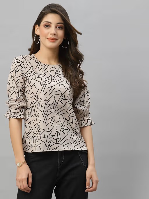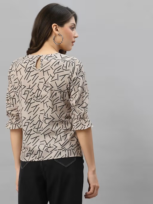 Women Nude and Black Abstract Printed Polyester Smart Casual Top