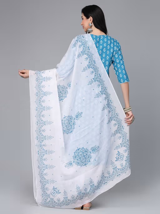 Rayon floral printed kurta with embroidery, border printed Pant which has full elasticated waistband and printed voile dupatta. Products Kurta Length-46" inch, pant length-38" inch and Dupatta Length- 2.30 Mtr. Pair it with stunning jewellery and heels to flaunt yourself.