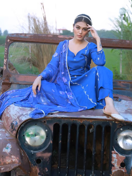 Heer Royal Blue Hand Embroidered Silk Kurta Pant with Hand Painted Dupatta have -Top Hand embroidered silk straight kurta with lining.Bottom Fully elasticated silk pant with mulmul lining.Dupatta Hand painted chiffon dupatta with gota on all edges