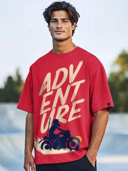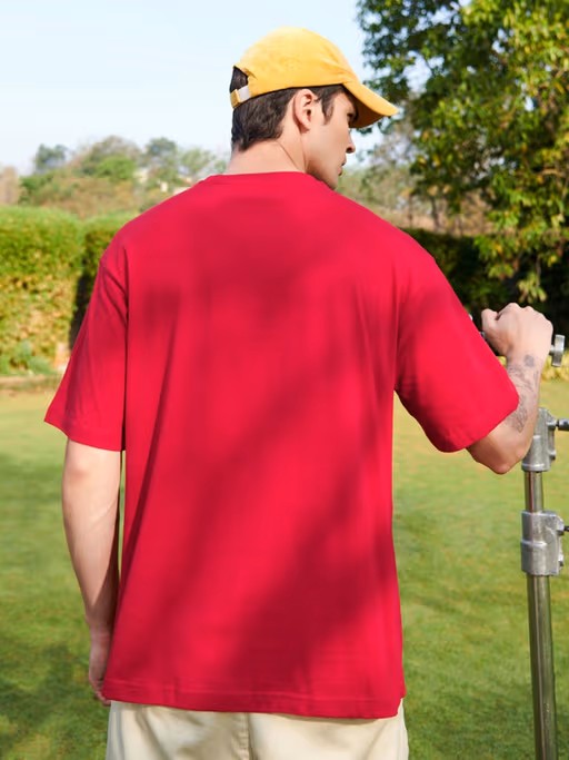 Men Red Graphic Oversized T-Shirt