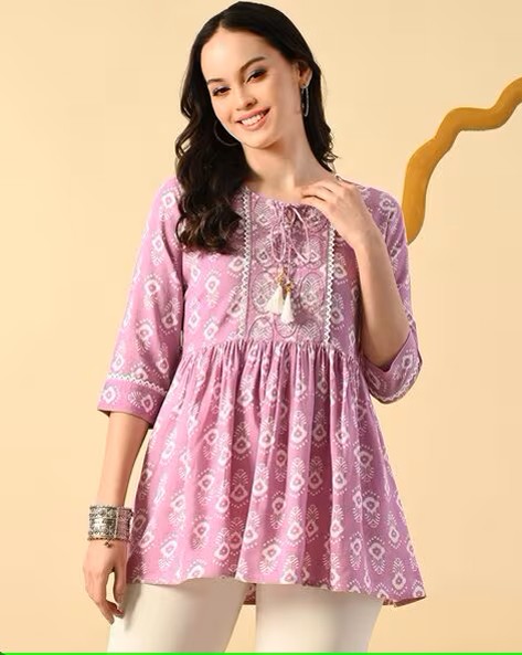 Women Floral Print Round-Neck Tunic