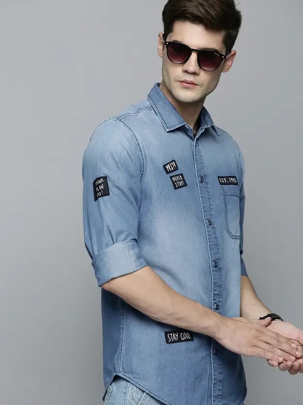 Men Regular Fit Solid Cut Away Collar Casual Shirt