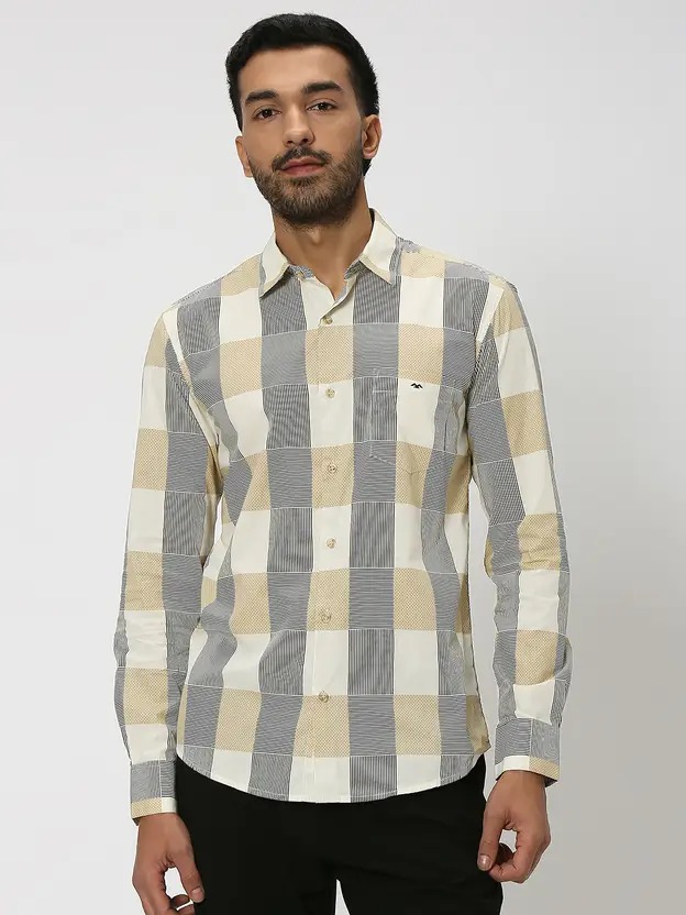 Men Slim Fit Checkered Spread Collar Casual Shirt