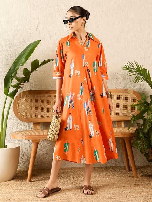 Elevate your style with this stylish Uptownie Lite Orange Printed Loose Dress. Made from breathable fabric, this dress feature an elegant design and provides exceptional comfort. For a chic look, pair it with heels and minimal jewelry.
